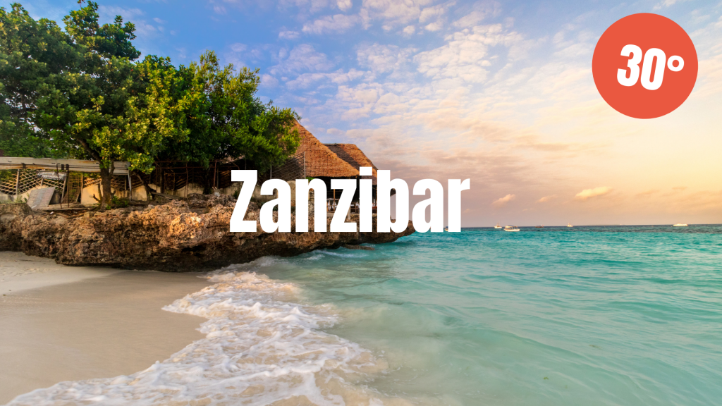 Precis utanför Tanzania ligger paradisön Zanzibar. Här kan du njuta av 30-gradig värme i april och en genomsnittlig vattentemperatur på otroliga 29°C. Här vajar palmerna tätt och stränderna sträcker sig så långt ögat kan nå. Huvudön omges av flera öar och det finns laguner och korallrev vart man än vänder sig.