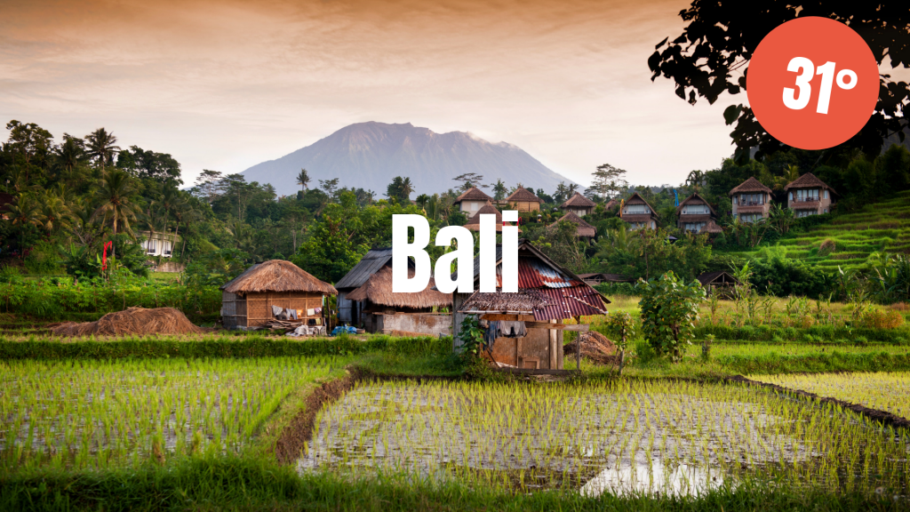 Många drömmer om att någon gång sätta sin fot på Bali. Passa på att besöka den indonesiska ön i maj då vädergudarna bjuder på 31°C och hela 25 regnfria dagar. Samtidigt kan du räkna med 28°C i vattnet och att temperaturen knappt sjunker under 26°C på kvällen och natten.