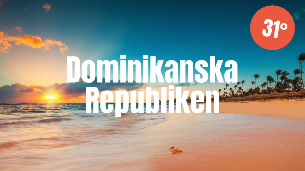 Byt svenska vårdagar mot varma soldagar i Dominikanska Republiken. I maj kan du se fram emot en temperatur på i snitt 31°C i detta karibiska paradis och en mer än angenäm vattentemperatur på 27°C. Om natten sjunker temperaturen endast till 22°C och du behöver inte vara allt för orolig för regn, här regnar det i snitt 17 dagar under månaden.