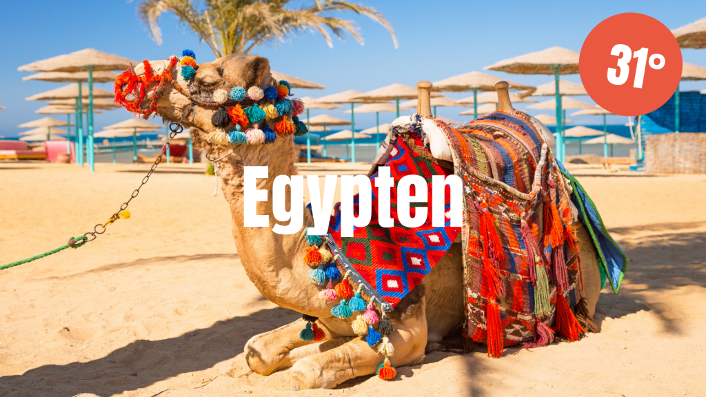 Både Marsa Alam-kusten och Hurghada-kusten i Egypten bjuder på en genomsnittlig dagstemperatur om 31°C i maj månad. Svalka dig kan du göra dig i Röda Havet som brukar ha en temperatur runt 22°C under denna period. Dessutom kanske det bästa av allt med en resa till Egypten i maj; hela 30 regnfria dagar!